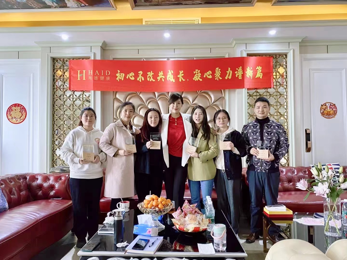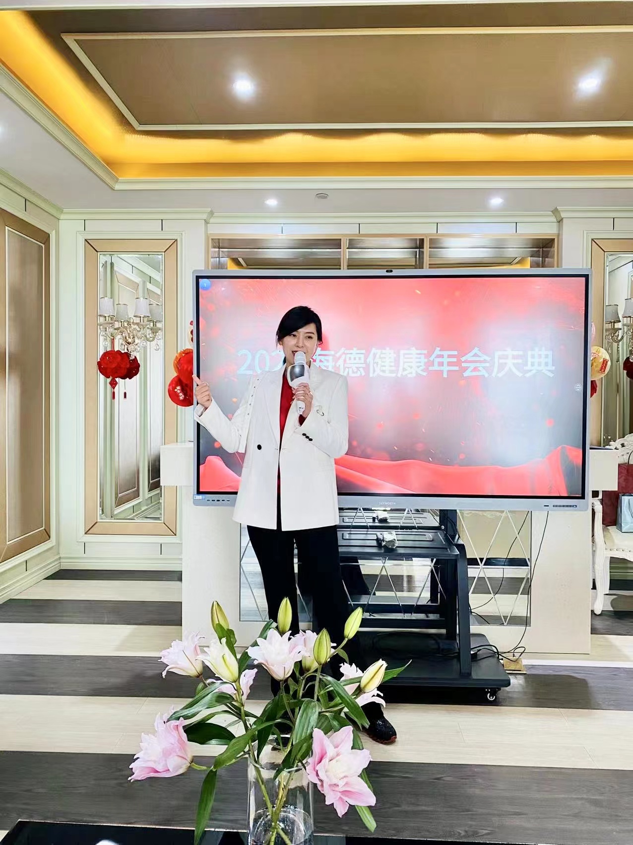 在温馨而欢乐的氛围中,海德健康创始人兼董事长顾岩女士优雅亮相,引领员工共同庆祝公司过去一年取得的成绩。