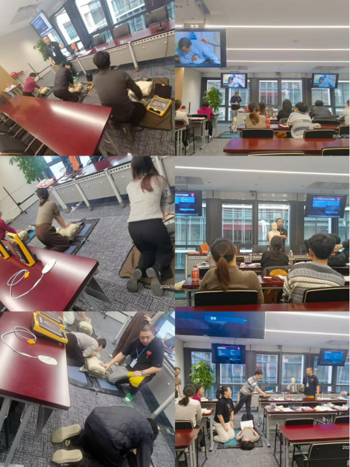 时值大雪节气,天气愈发寒冷,这样的气候条件极易诱发心脑血管疾病,如卒中、心肌梗死等紧急情况,严重威胁人们的生命健康。同时,冬季频繁的雨雪天气也增加了意外事件发生的可能性。为了提升员工的急救能力,确保在紧急情况下能够及时有效地提供帮助,大雪节气,海德健康为中国人寿保险股份有限公司(以下简称“中国人寿”)成功举办了一场急救培训活动。